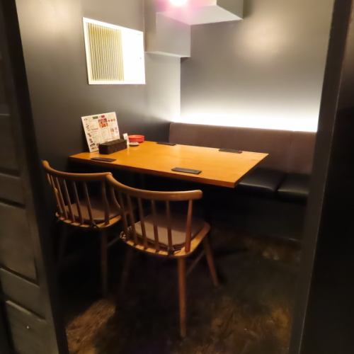 デートや親しい友人との食事にぴったりな2名テーブル席。落ち着いた照明の中で、お食事を楽しみながら、心地よい時間をお過ごしください。